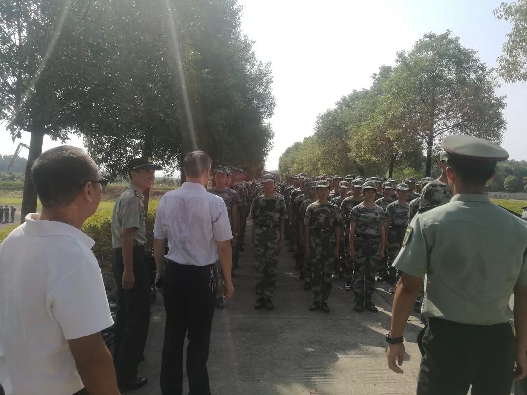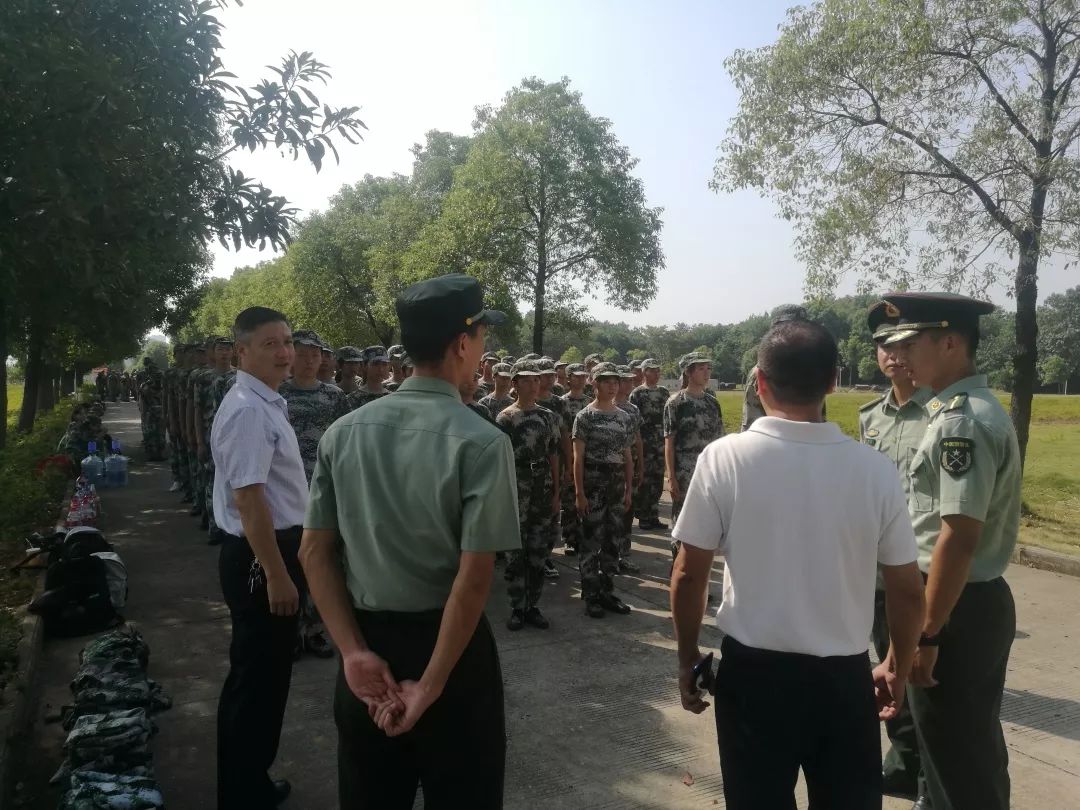 党委书记李梁华、党委副书记黄文昌、学工办主任兼团委书记曾志强一行来到军训场地看望慰问正在军训的2018级新生和教官。
