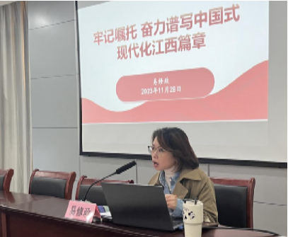 宣讲会上,易修政对习近平总书记考察江西重要讲话精神做了系统梳理和深入阐述,她提出,要充分认识习近平总书记再次考察江西的重大意义,全面理解习近平总书记对江西发展提出的新的战略定位,准确把握习近平总书记对江西发展提出的任务要求,以及进一步推动长江经济带高质量发展的重要要求,深刻把握贯彻落实习近平总书记考察江西重要讲话精神的实践要求。易修政还强调,要切实将习近平总书记考察江西重要讲话精神贯穿于ai明星