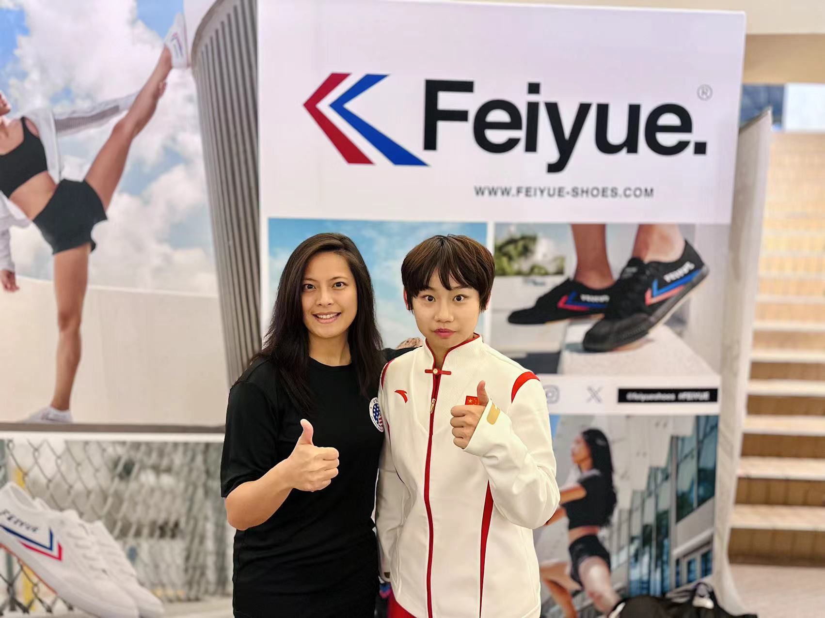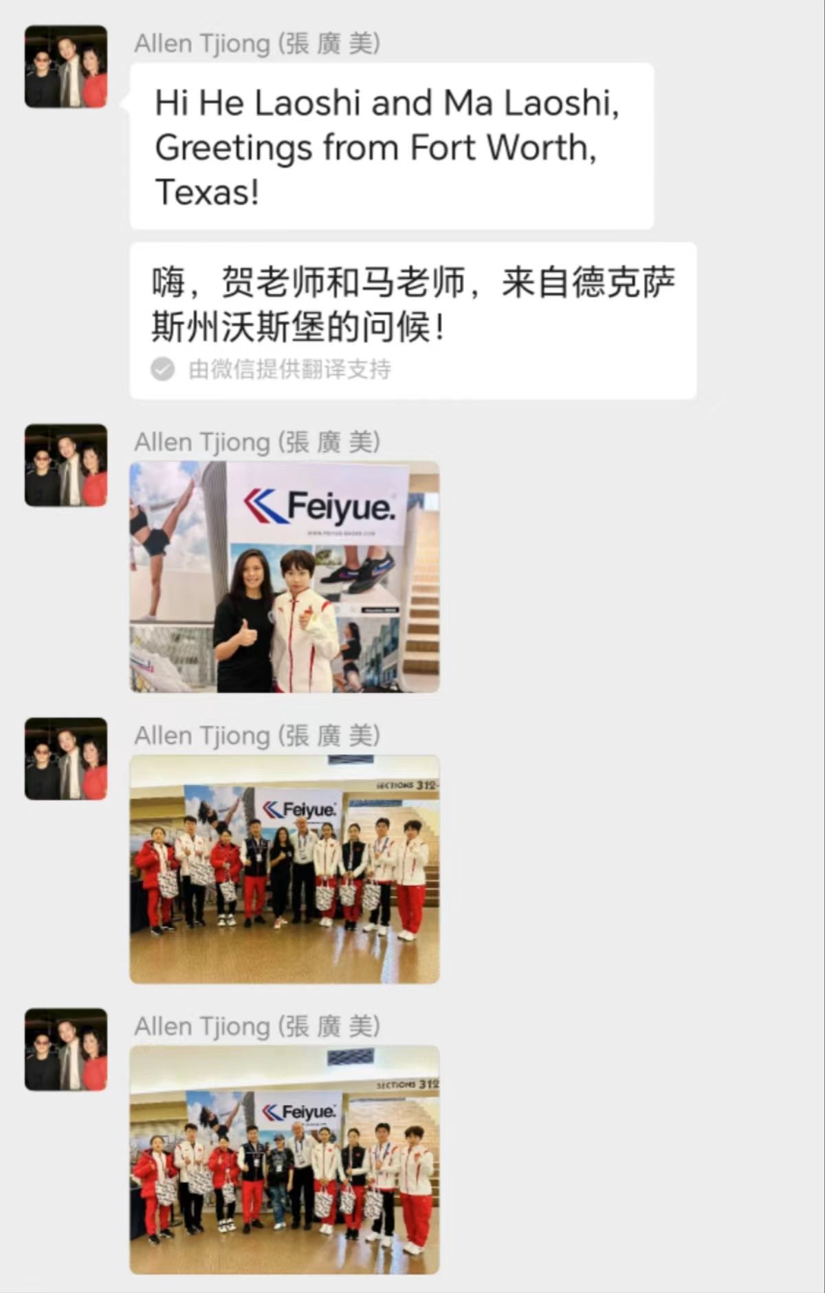 2021级体育教育专业学生刘鑫前往比赛。期间,美国罗格斯大学武术训练中心主任张爱宁前往赛场看望,并积极展开友好交流,庆祝刘鑫夺得女子刀术冠军的成绩。